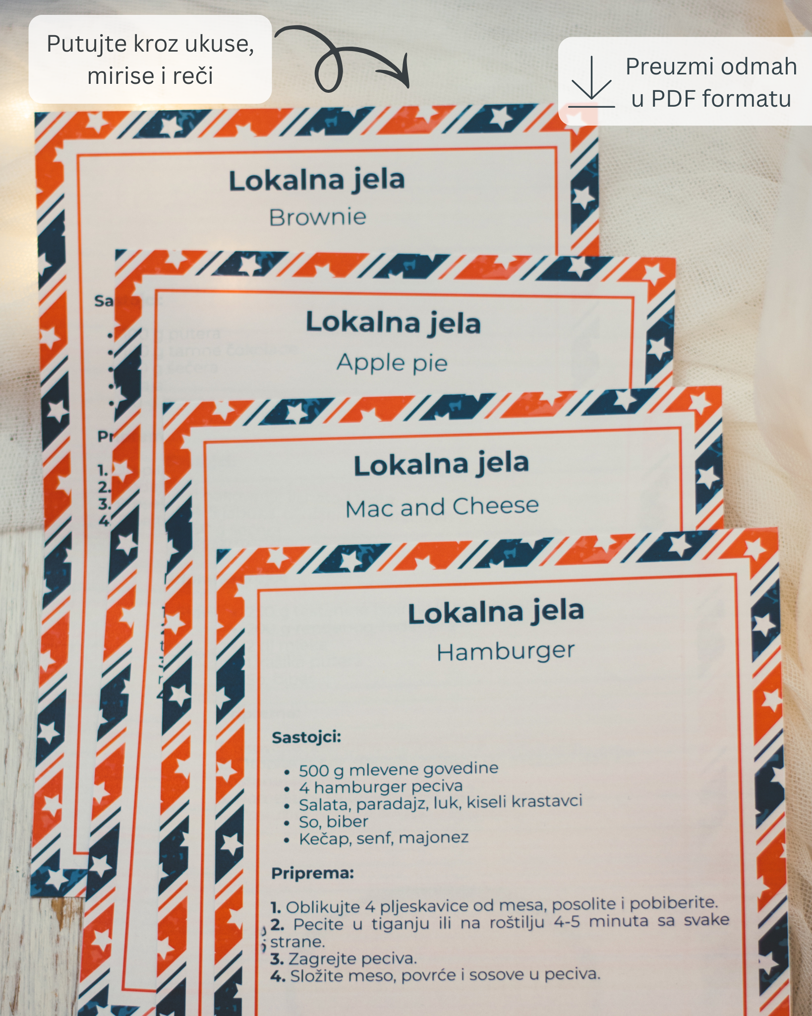 Tematski „date night“ paketi inspirisani najlepšim državama — svaka država se prodaje zasebno po 1000 RSD. Preuzmi, odštampaj i uživaj u savršenom romantičnom večeru.