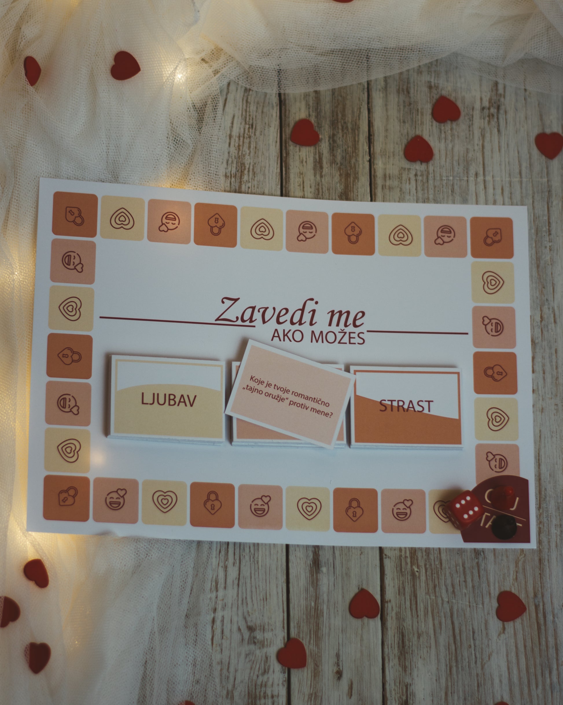 Flert, izazovi i malo igre živaca – „Zavedi me ako možeš“ je zabavna igra za parove u kojoj testirate koliko dobro se poznajete, koliko umete da zavodite i koliko ste usklađeni u željama. PrintajMe proizvod koji štampaš kod kuće i koristiš iznova – savršen za romantične večeri, vikende udvoje ili poseban povod.